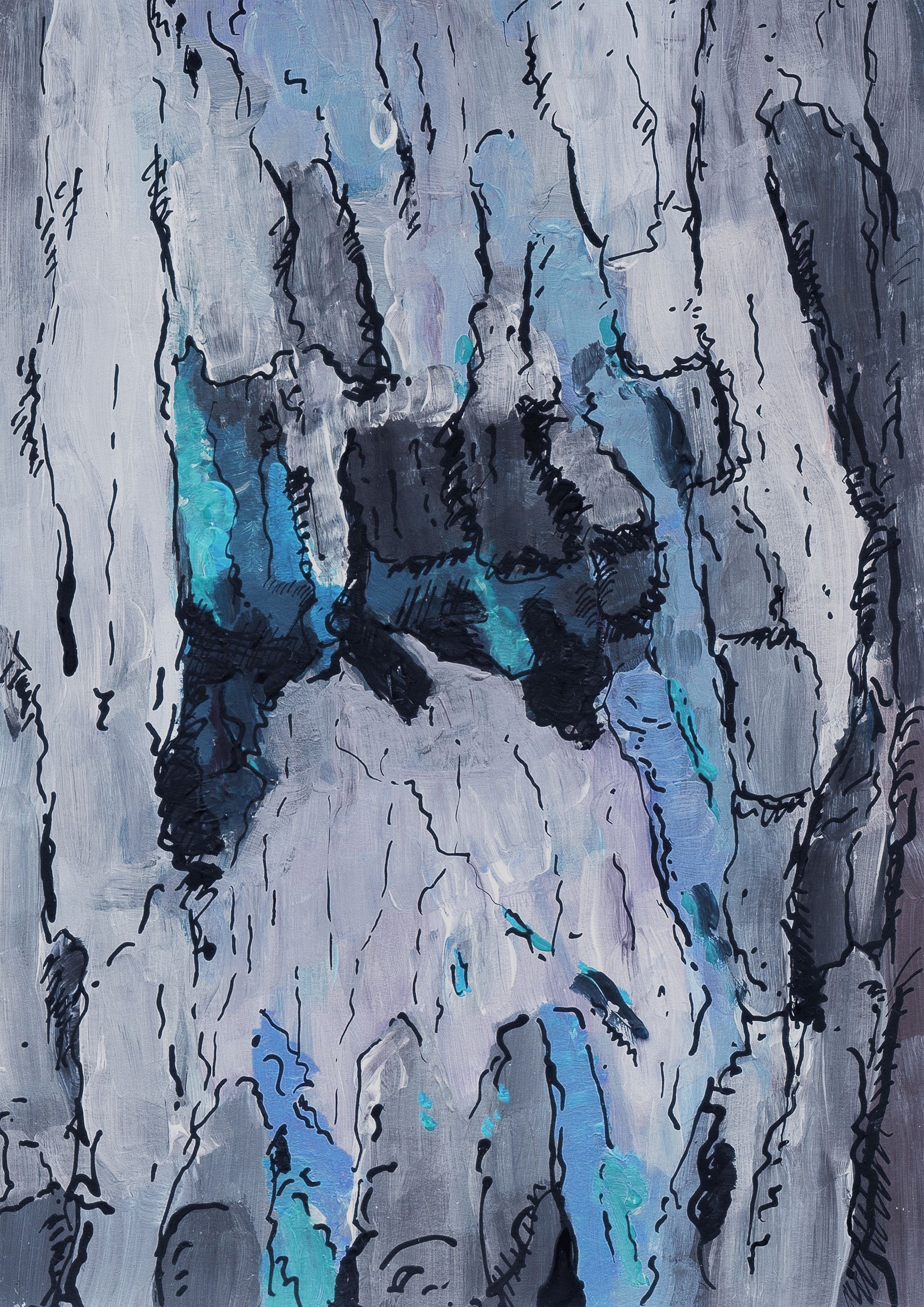 Cool serenity in natural form - The calm of winter mornings, etched into the rhythms of bark.